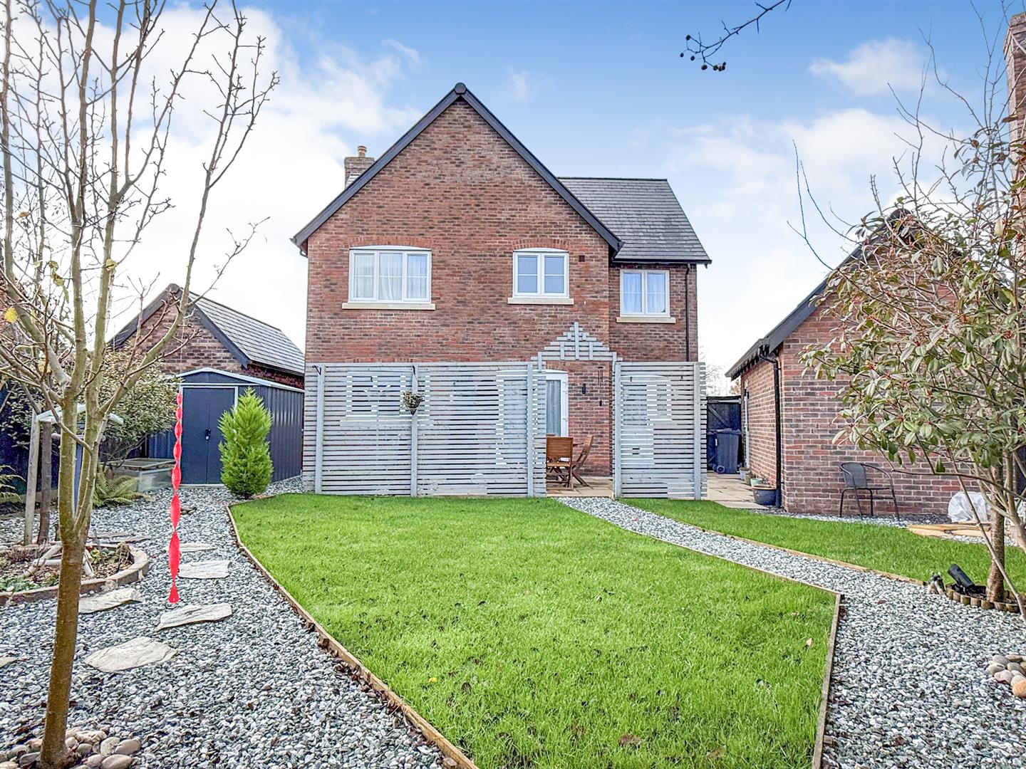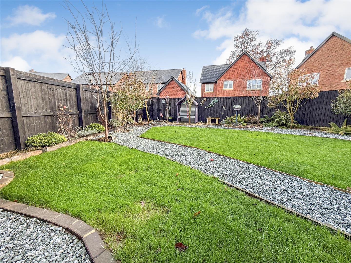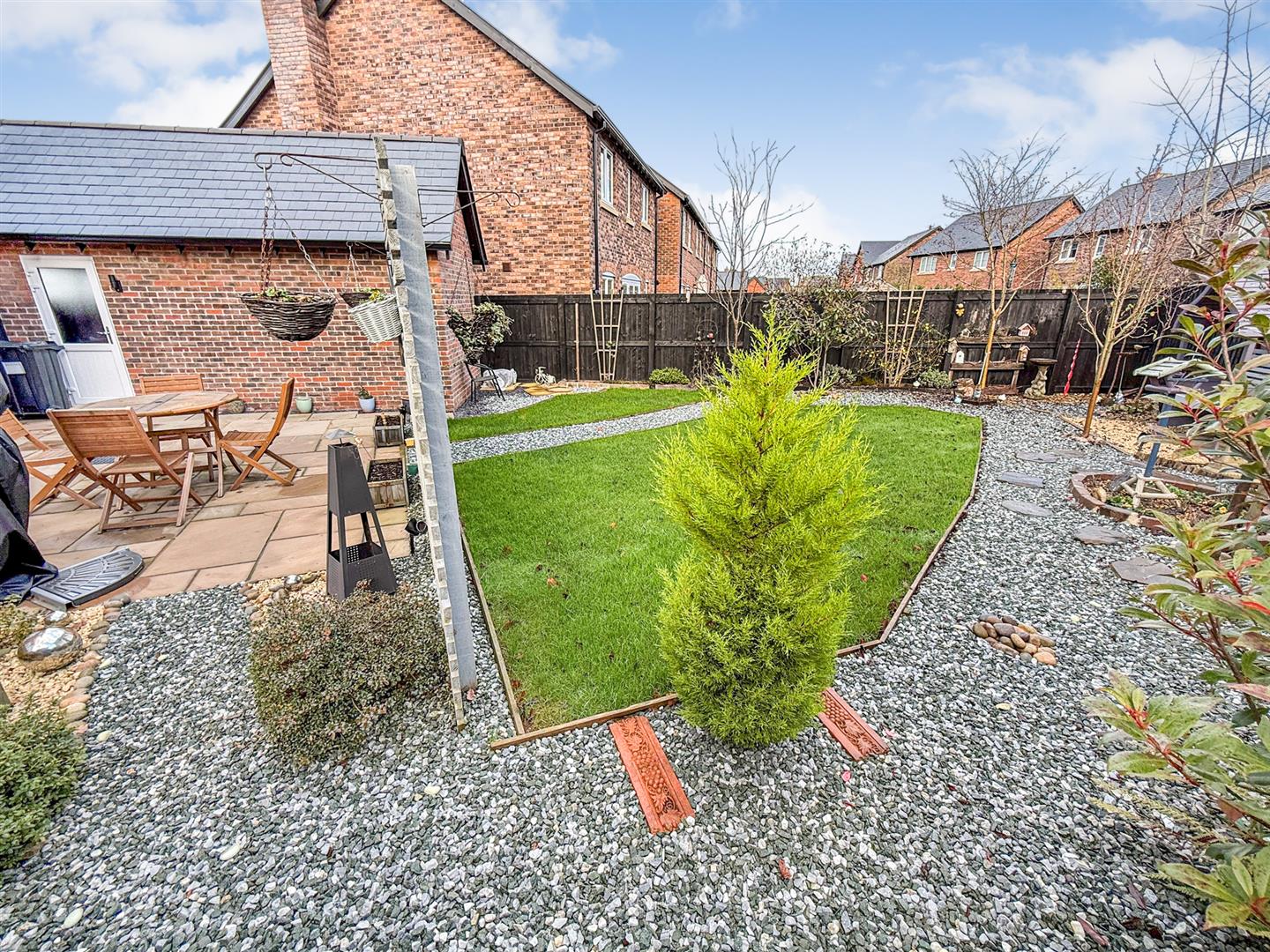 To the rear of the property the gardens are another great feature of this lovely home. Having an Indian stone paved patio, stocked borders and lawned areas with various places to sit out and relax. With a gravelled pathway through the garden, a pond and a shed. There is also outside lighting, an outside tap , fence panelling to the boundaries and a gate leading to the front of the property.
