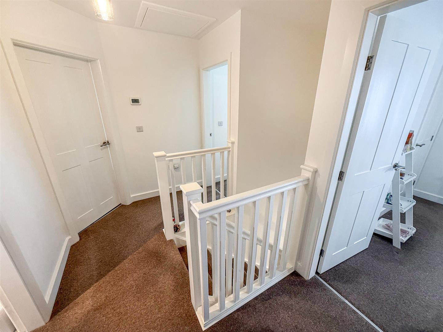 The first floor landing has doors leading to the bedrooms, bathroom, radiator and a loft hatch giving access to the loft.
