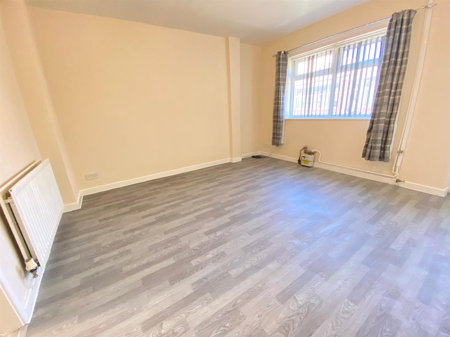The property benefits from a spacious and well-presented living room, featuring neutral décor and modern flooring throughout. A large window allows for an abundance of natural light, creating a bright and airy living space.
