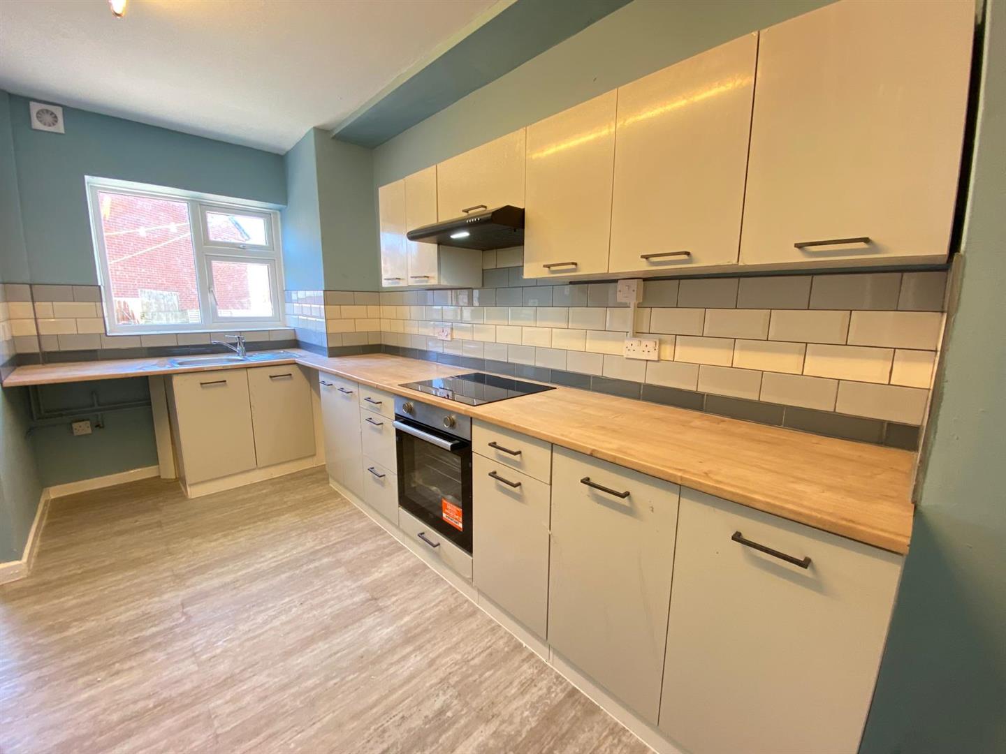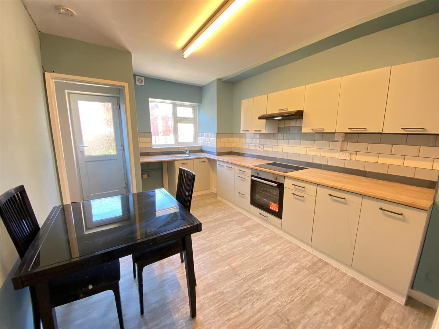 The property benefits from a modern and well-presented kitchen/diner, fitted with a range of contemporary wall and base units complemented by wood-effect worktops and tiled splashbacks. The kitchen includes an integrated oven and hob with extractor over, along with ample space for additional appliances.