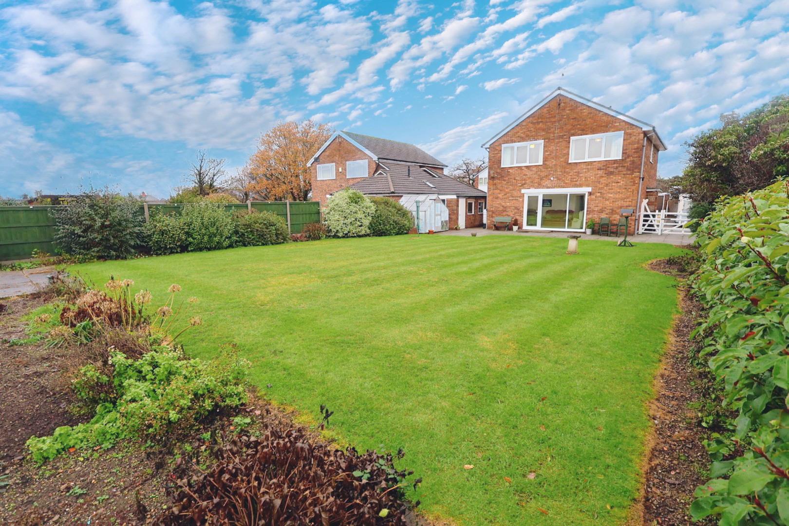 Situated in a highly desirable village with easy access to Wrexham, Chester, local motorway networks, and day-to-day amenities. The property is also within walking distance of a well-regarded primary school. This detached four-bedroom home occupies a generous plot and benefits from gas central heating and UPVC double glazing. The light and spacious accommodation includes a vestibule, inviting entrance hall, living room with rear picture window, dining room, kitchen with light woodgrain units, and cloakroom WC on the ground floor. Upstairs, a modern three-piece shower room serves four generous bedrooms. Externally, the front garden has lawn and shrubs with double driveways—one leading to the detached tandem garage and the other to double timber gates giving access to the rear garden. The south-west facing rear garden is predominantly lawned with a paved patio, shrub borders, vegetable garden, greenhouse, and covered storage, all enclosed by timber fencing.