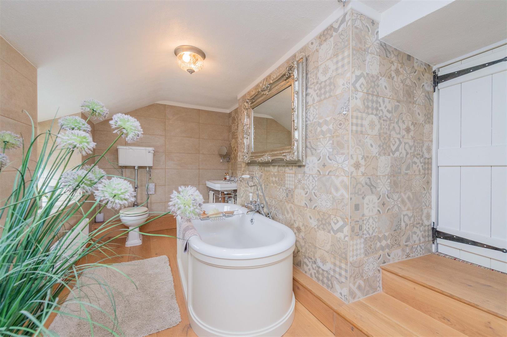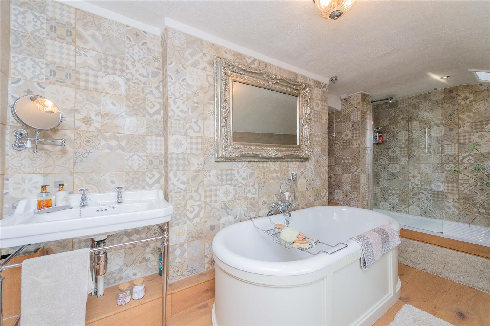 The stunning family bathroom has a newly fitted roll top bath with central mixer tap and shower, w/c, wash hand basin and a walk in shower with mains shower. There is a window to the rear, oak floor, heated towel rail, tiled walls and a double glazed roof light.