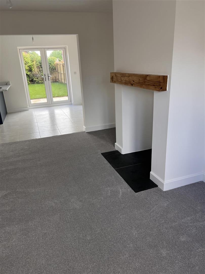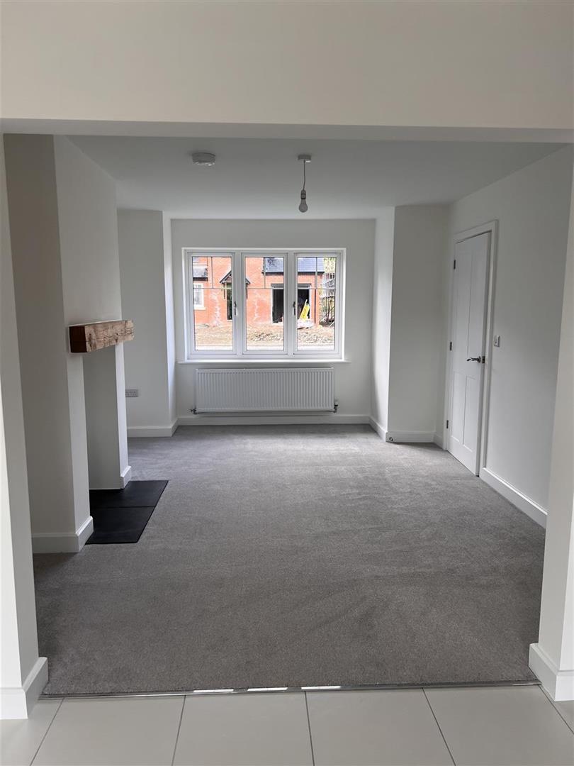 A good sized lounge with a window to the front, a radiator, inglenook fireplace leading to an open plan kitchen/dining room.