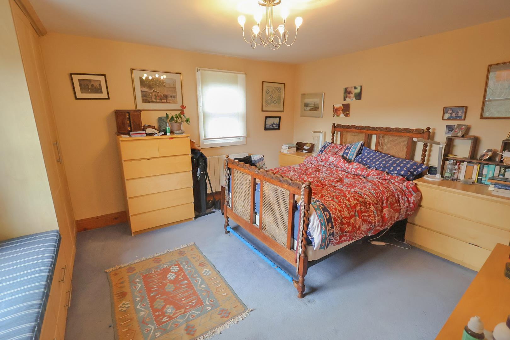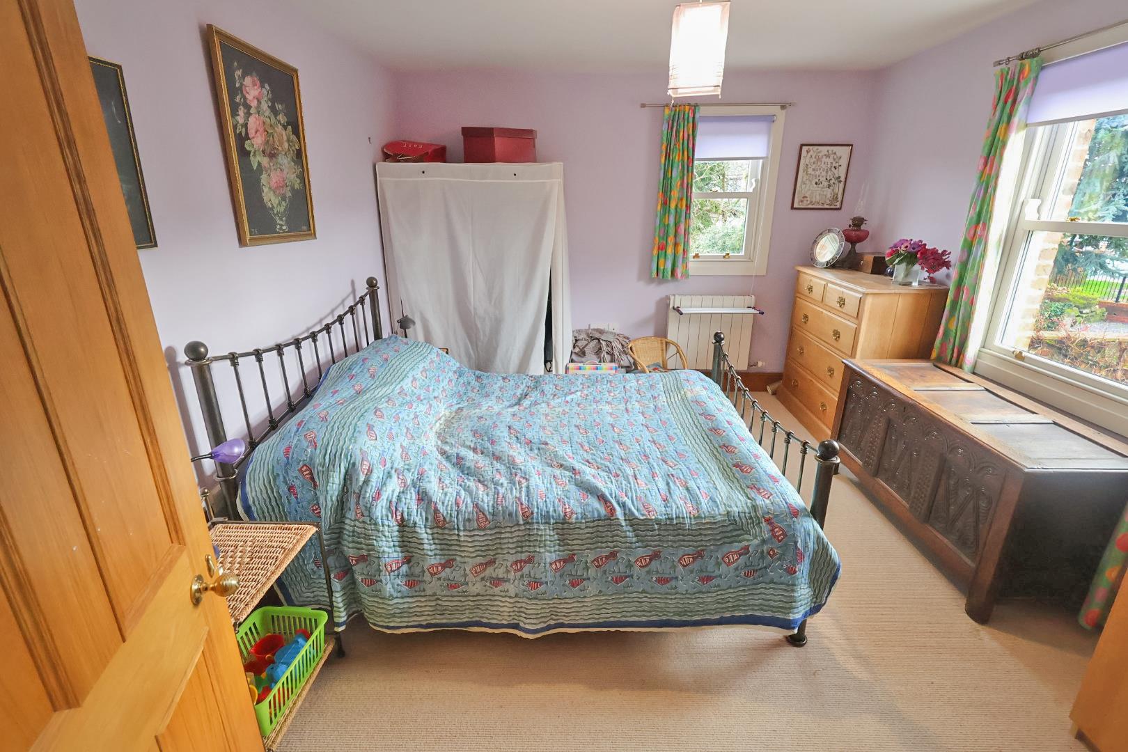 Fitted with light wood-grain maple effect bedroom furniture incorporating wardrobes and window seat with drawers below. Sash windows to front and side elevations. Radiator.