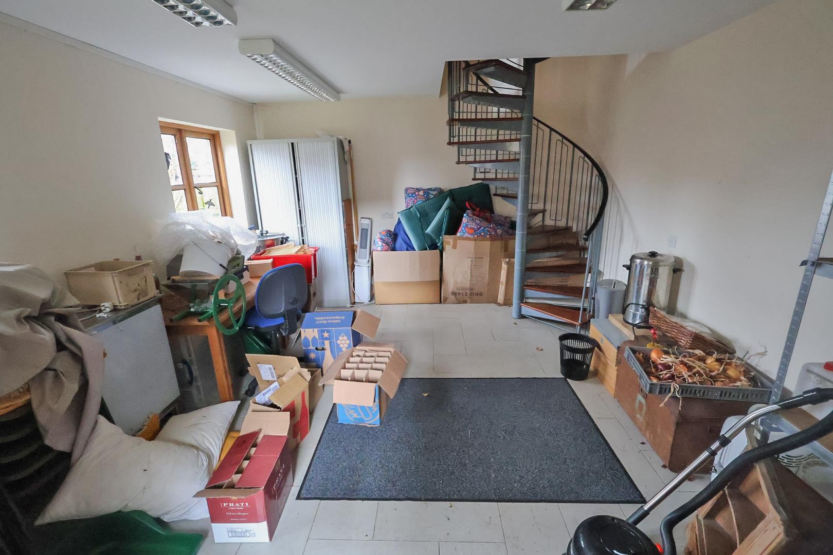 Accessed via an up-and-over garage door. Pitched roof, power and lighting installed. Solar panels on the roof generating approximately £900 per annum income.