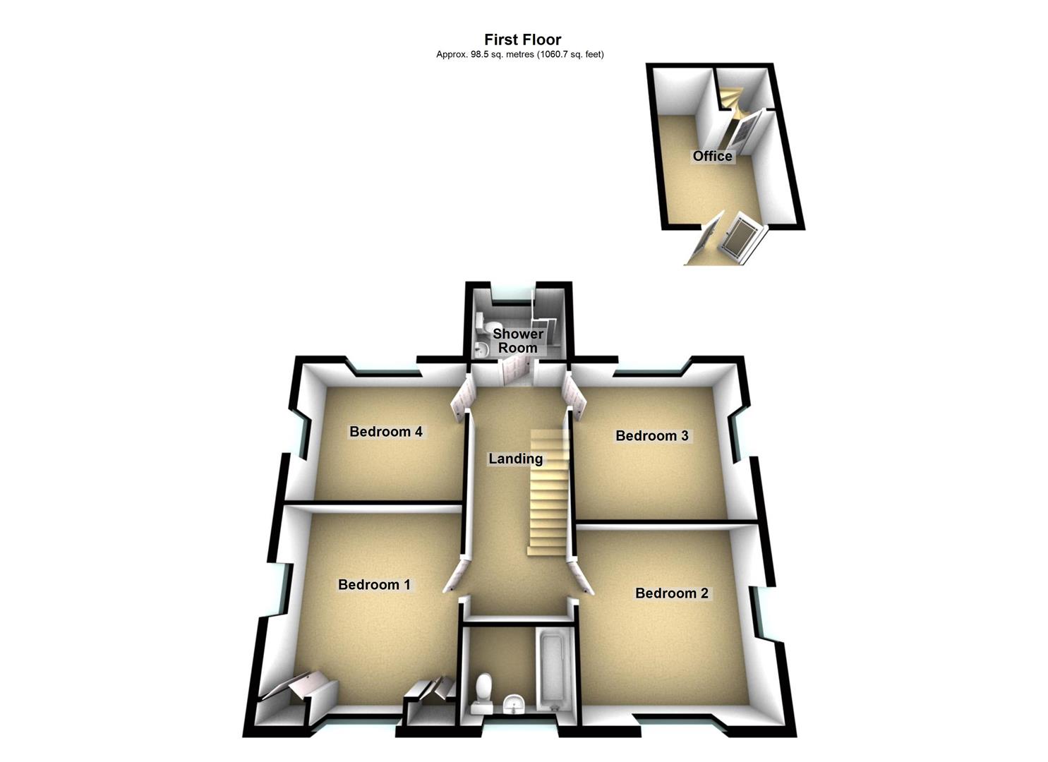 With a skylight to rear elevation, sash window to side elevation, access to loft space and deep built-in wardrobe/cupboard.