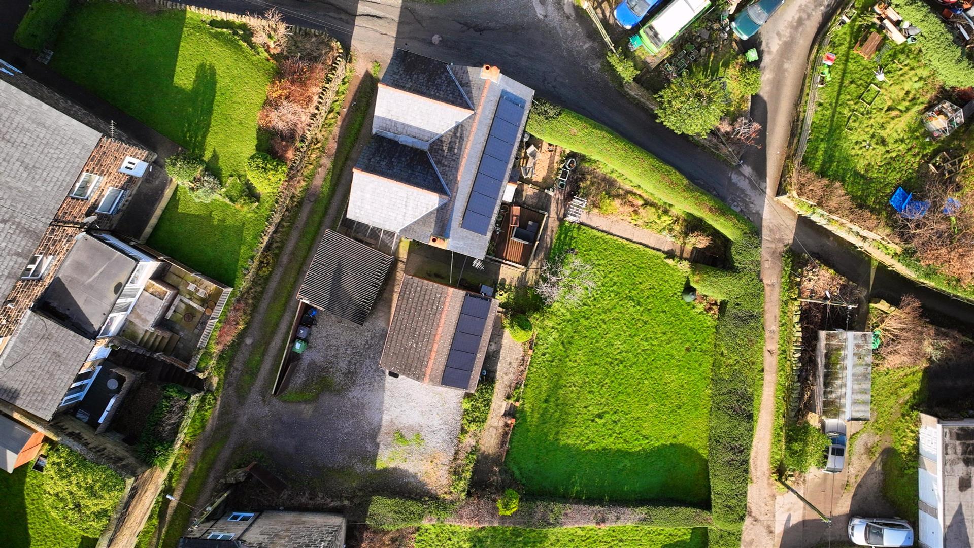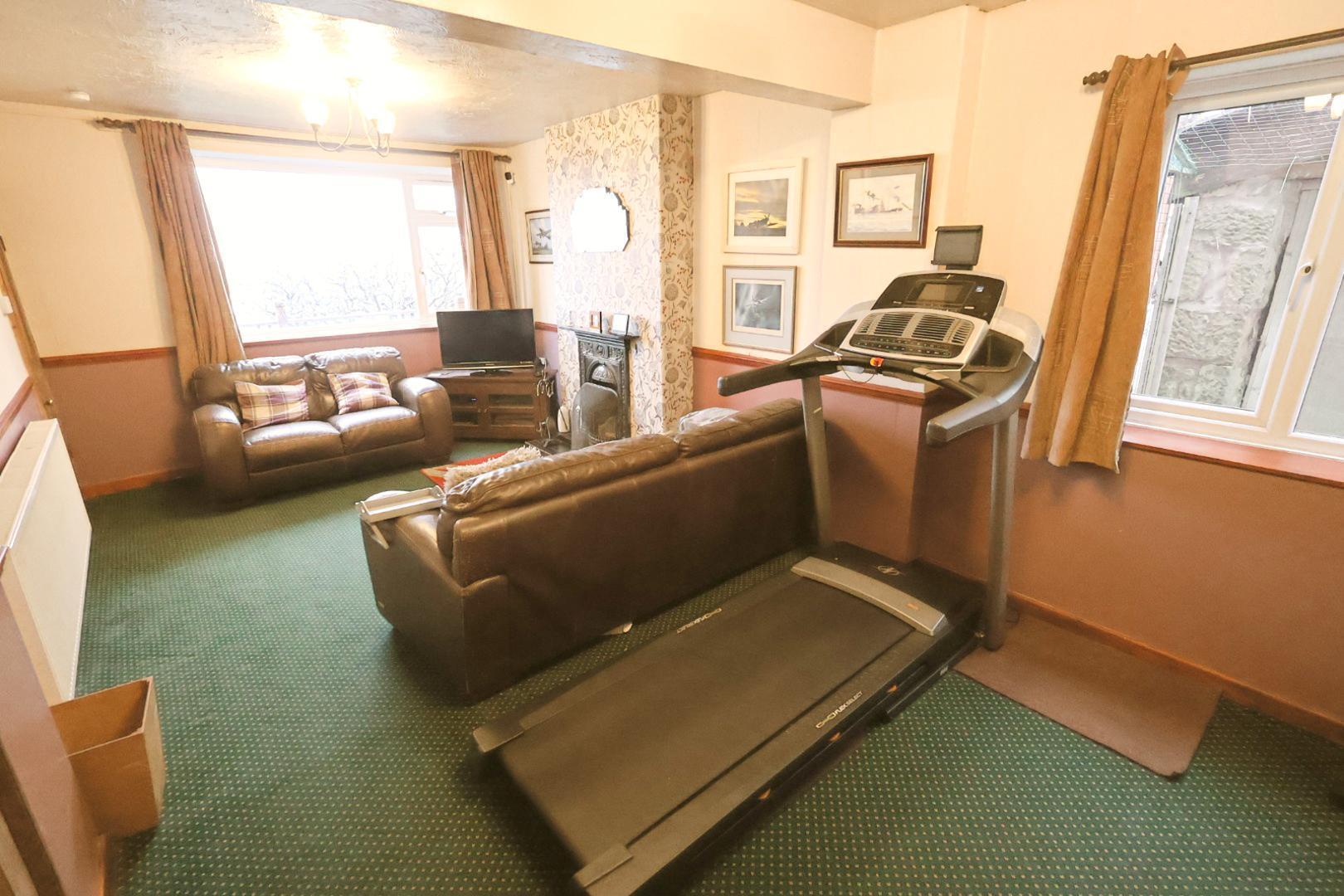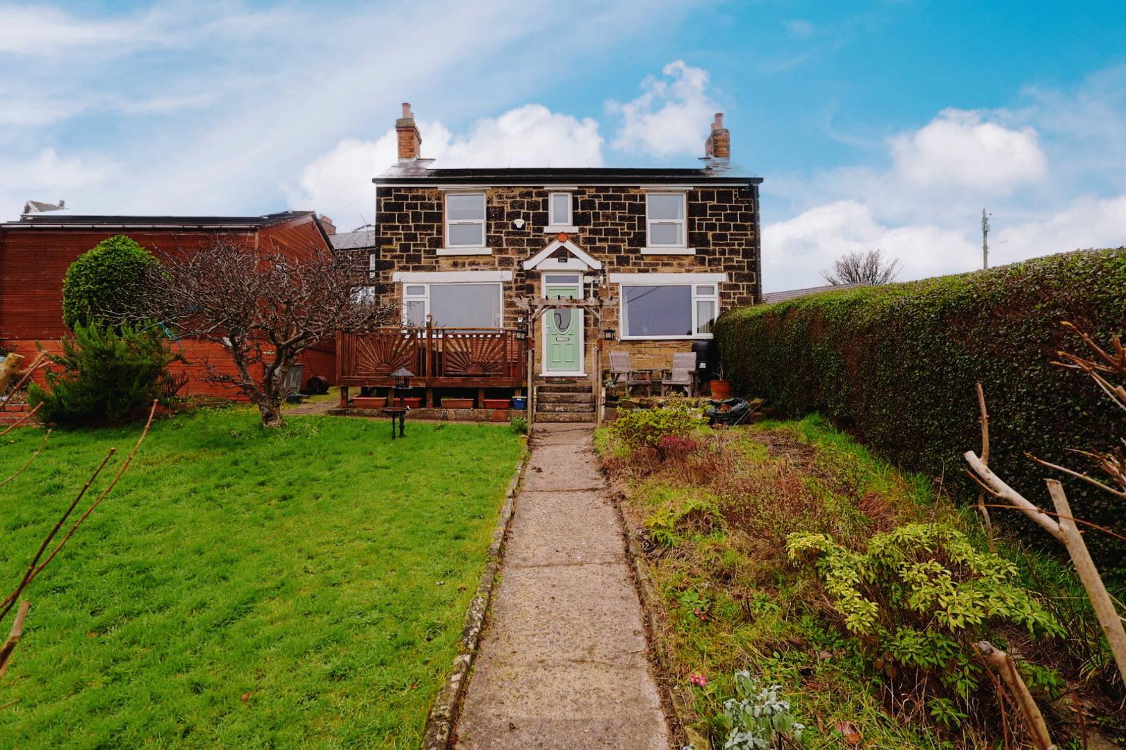 A detached stone property set on an elevated plot, offering far-reaching views. The accommodation includes an entrance hall, living room, dining room, kitchen, three double bedrooms, and a four-piece bathroom. The property benefits from off-road parking, a detached double garage, and a stone outbuilding. Externally, there are gardens along with decked and gravel seating areas. Additional features include gas central heating, UPVC double glazing, and solar panels.