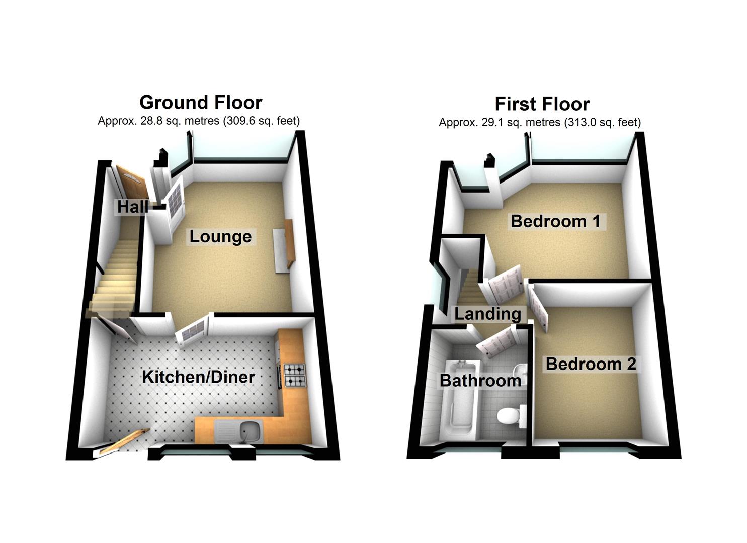 Ideally located for easy access to Wrexham town centre and local amenities, this two-bedroom semi-detached home benefits from UPVC double glazing and gas central heating. The property comprises an entrance hall, living room with a front bay window, kitchen/dining room with a range of modern gloss white wall, base, and drawer units, and a first-floor landing providing access to two bedrooms and a modern three-piece bathroom suite.