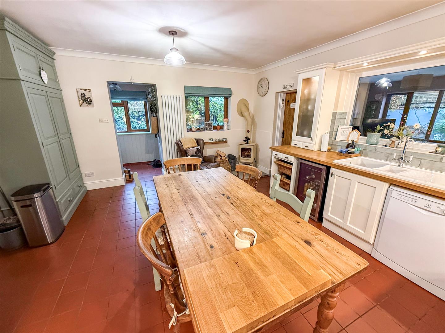 The kitchen/ dining room is the real heart of this lovely home and is fitted with a good range of floor and wall mounted units with worktop over and tiled surround. There is a Rangemaster double range oven, 5 ring gas hob with integral extractor fan, one and a half bowl sink with a mixer tap over, space and plumbing for a washing machine and dishwasher, log burning stove on a flagged hearth, vertical radiator, space for a fridge/ freezer, under unit lighting, a window to the side and a quarry tiled floor. Doors lead through to the boot room and the sitting room.