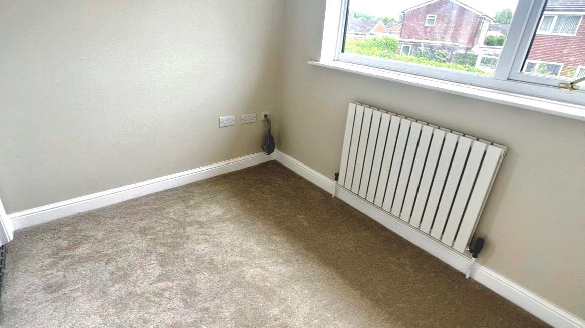 Currently utilised as a walk-in wardrobe, this versatile carpeted room could also serve as a single bedroom or home office. The space features four white ceiling spotlights, four double power sockets, and pre-installed cabling for a PoE CCTV system. Heating is provided by a medium-sized designer radiator.