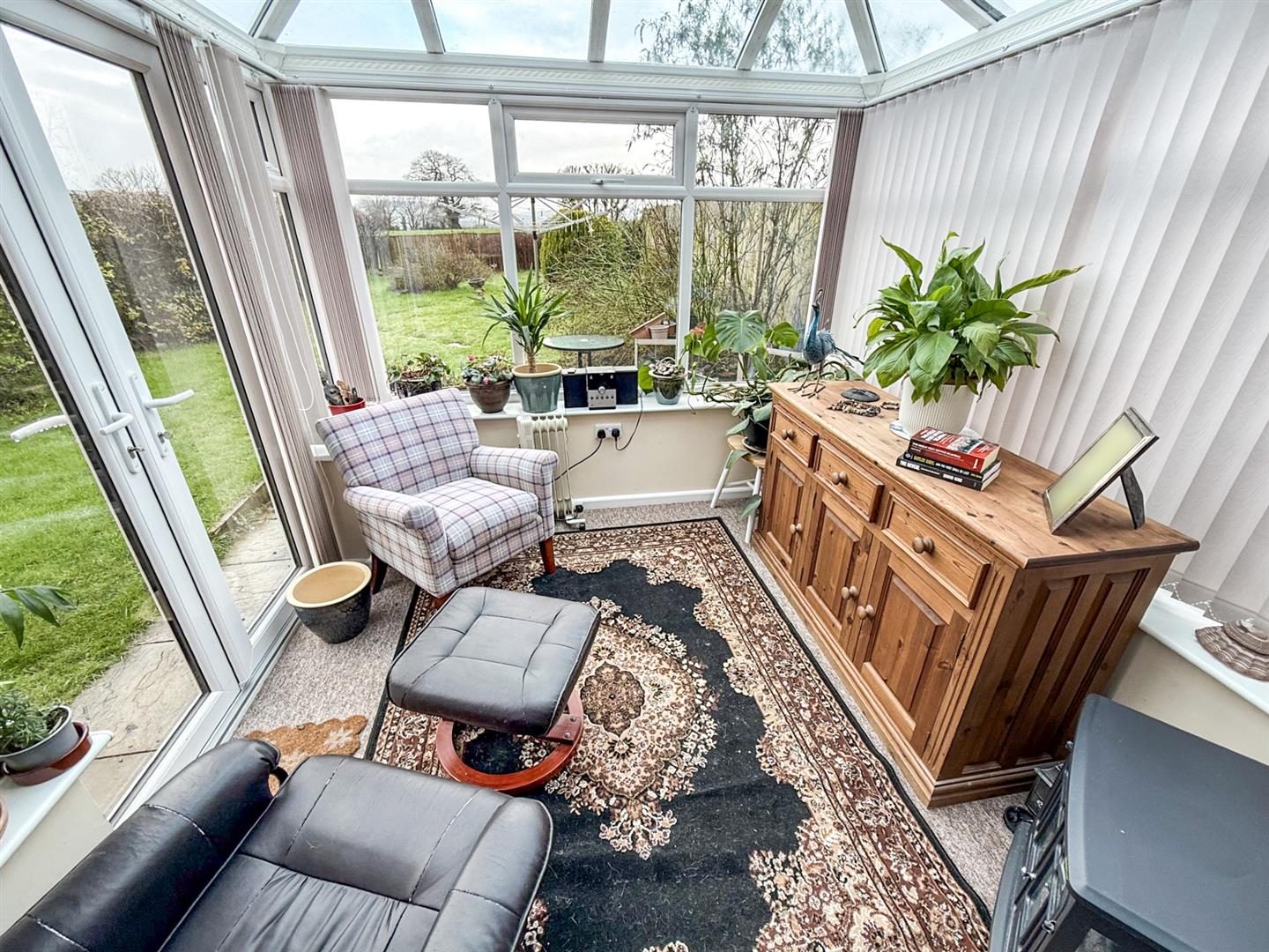 The bright conservatory overlooks the rear garden and has a dwarf wall and French doors leading out to the garden.