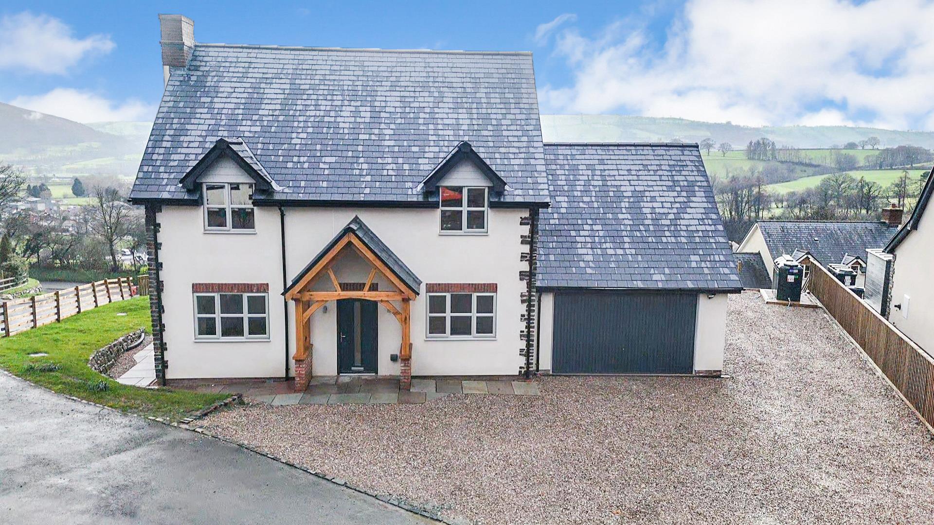 The rear garden is mainly laid to lawn which wraps around the property along with a large patio area for entertaining and taking in the stunning rural views of the Welsh countryside. The boundary has panel fencing.