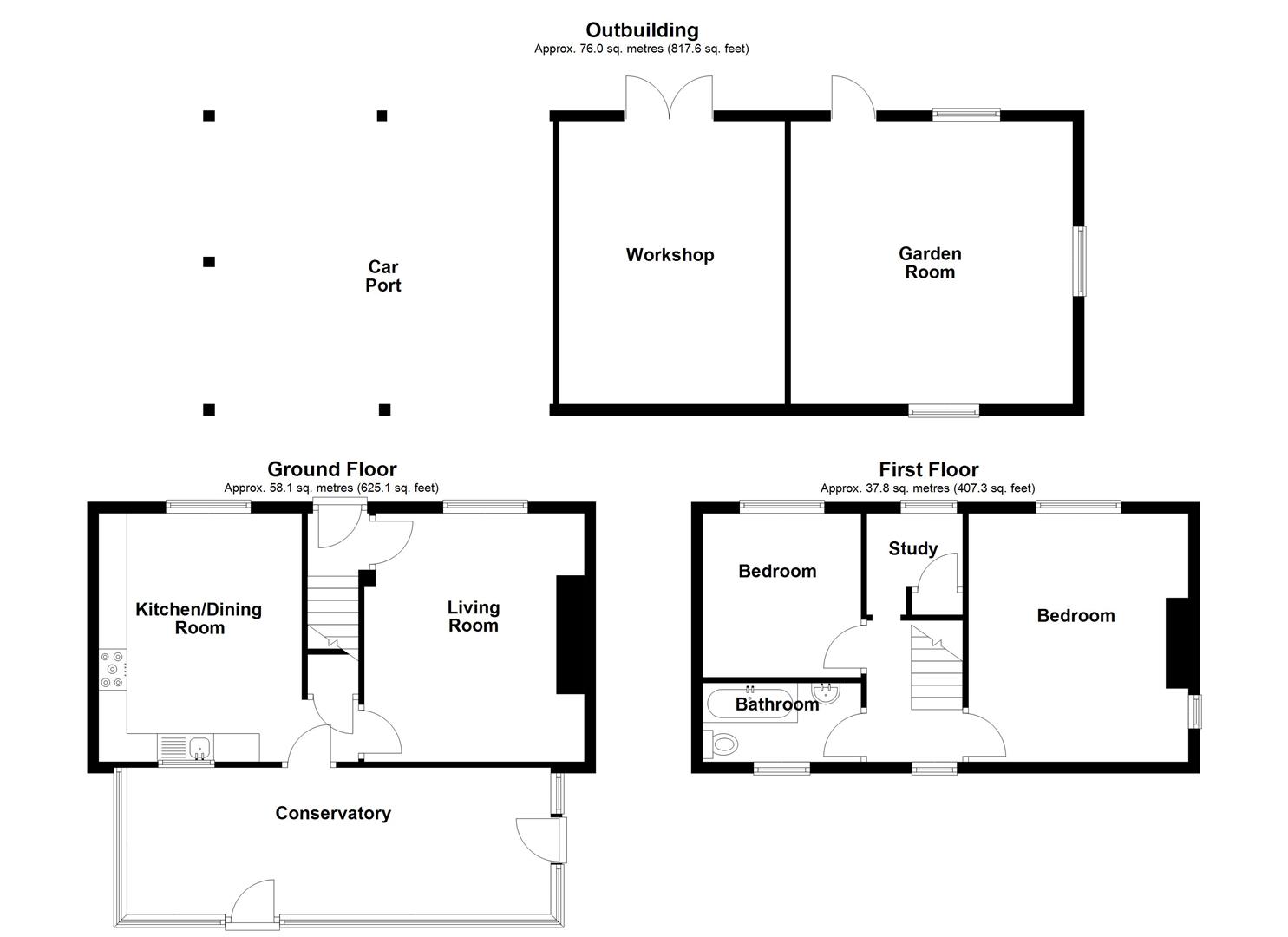 The adjoining large workshop has double doors to the front, light and power laid on.