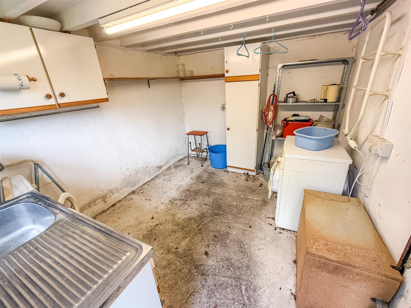 The workshop/ store located underneath the garage is currently split into two areas and has two windows to the rear with power and lighting.
