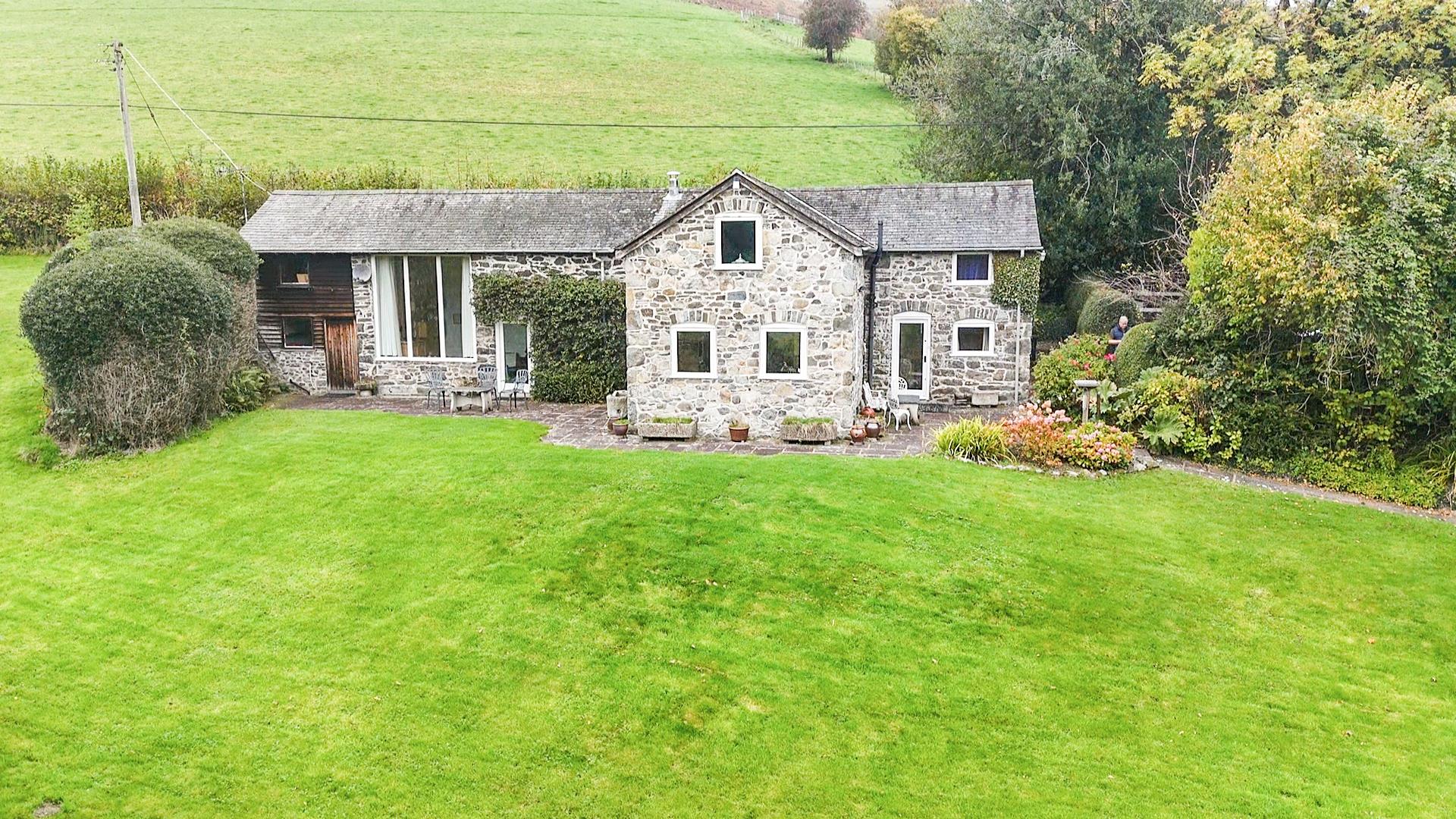 At the front of the property is a gated gravelled driveway providing parking for several cars, a log store and access to the double garage. A gate leads through and down to the front door of the cottage. There is a large patio that runs across the front of the cottage creating a lovely place to take in the garden and the scenery. The extensive lawns wrap around the front of the home with a pathway running along the rear.