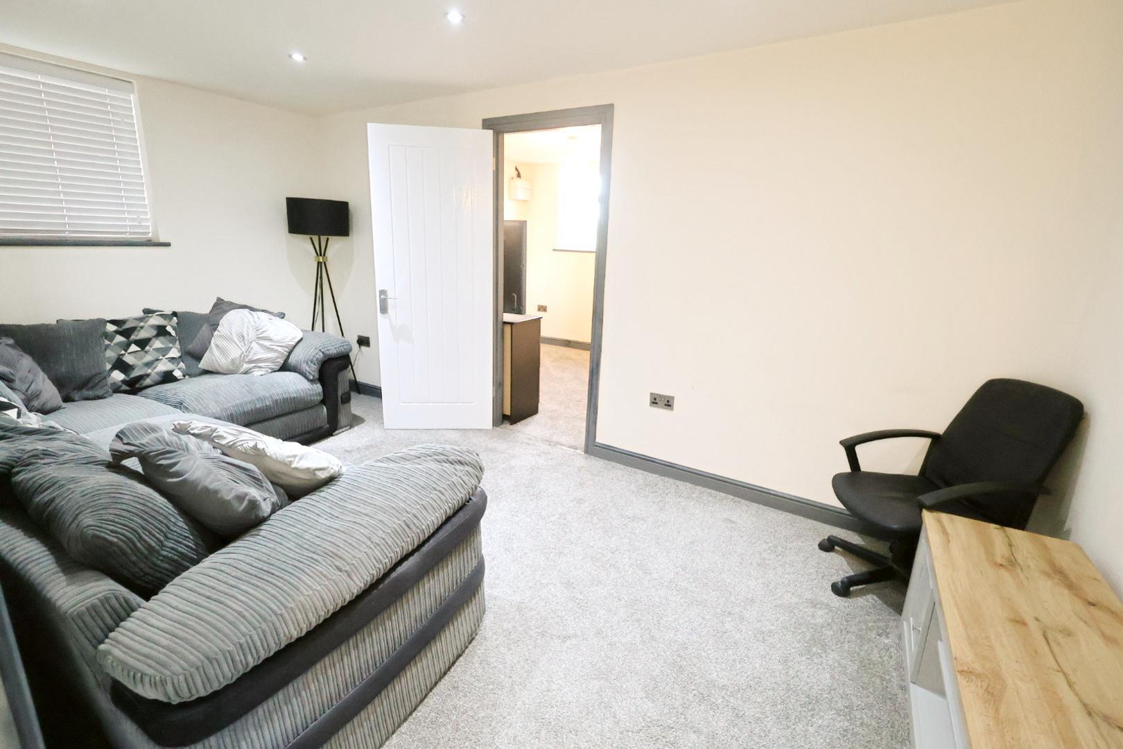 Entered through an opaque UPVC door with internal doors leading to the living room and a storeroom, which could be converted into a shower room.