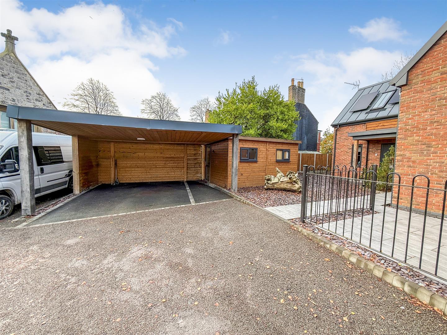 The purpose built studio is fully insulated and ideal for a number of uses. Having a lounge/bedroom area, kitchen area and shower room. The adjoining carport provides covered parking along with an electric car charging point.