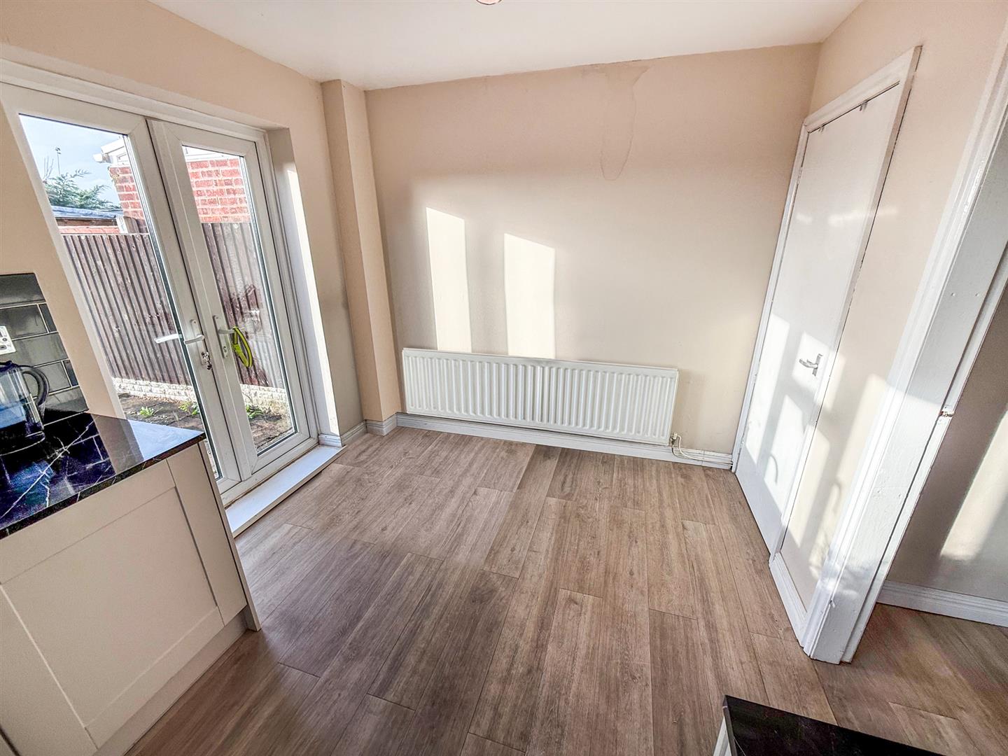 The modern kitchen comprises a range of wall and wall mounted units with worktops over with part tiled walls and stainless steel sink and drainer with mixer tap over. Integrated Bosch oven with hob and extractor hood over, space and plumbing for fridge/freezer and washing machine. Understairs storage cupboard, radiator and wood effect flooring. uPVC double glazed doors leading out to the rear garden and window to the rear and part glazed door to the side.