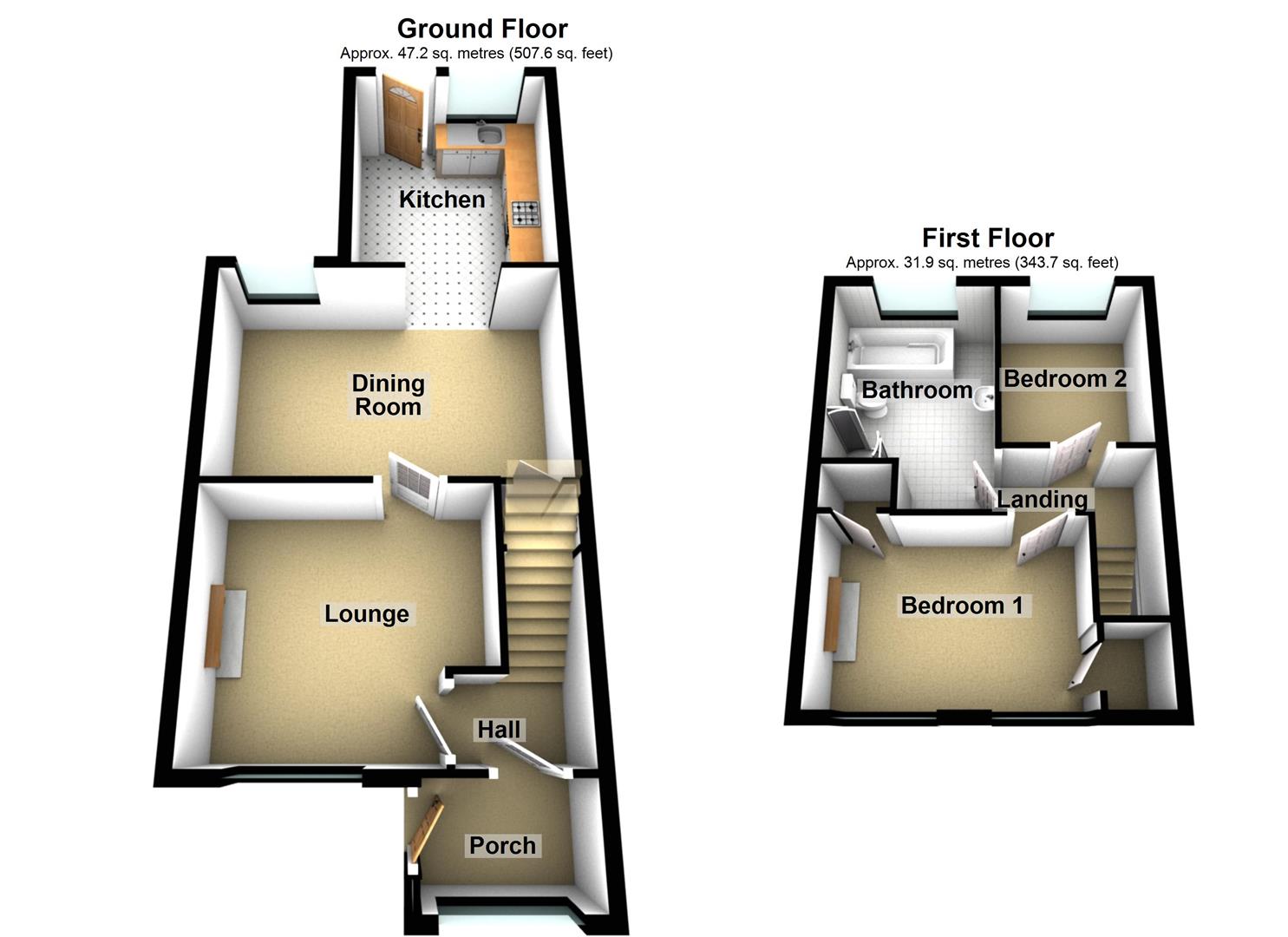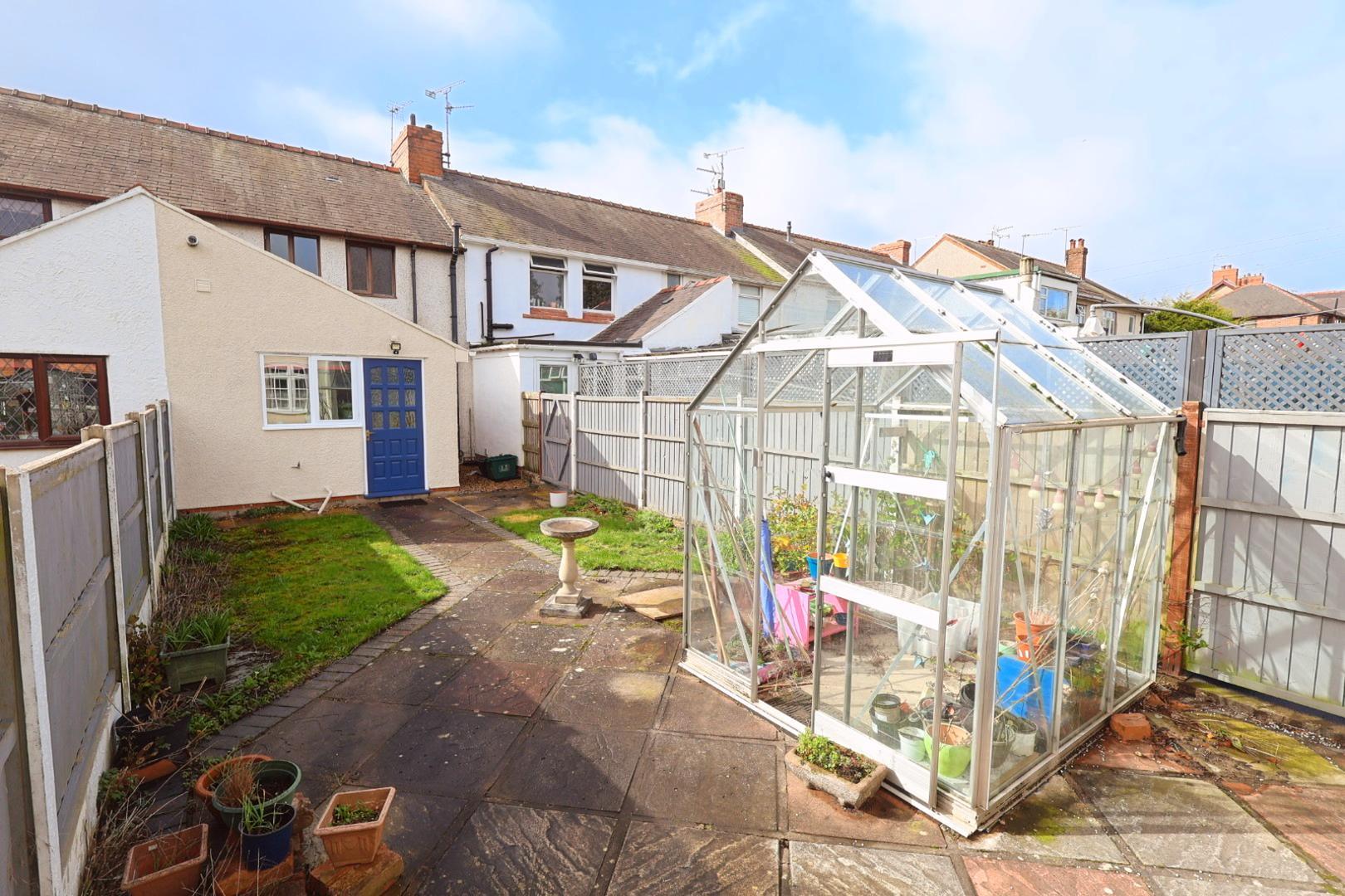 Situated in the popular village of Caego, this well-presented two-bedroom terraced property offers convenient access to Wrexham, local amenities and excellent road links. The accommodation briefly comprises an entrance porch, reception hall, living room with feature gas fire, spacious sitting/dining room and a fitted kitchen with skylights and exposed beams. To the first floor are two bedrooms and a generous family bathroom fitted with a four-piece suite. Externally, the property benefits from a lawned front garden and an enclosed rear garden with patio, greenhouse and gated access leading to a detached garage with off-road parking.