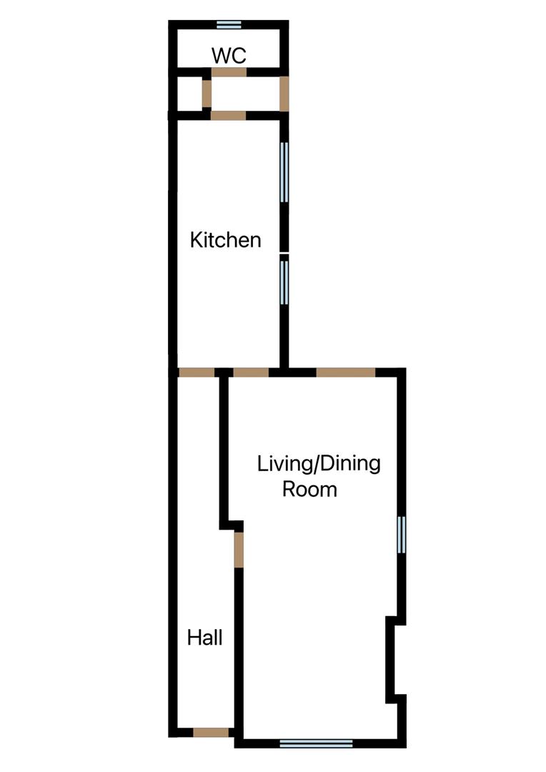 A lovely, open and spacious triple-aspect room featuring a continuation of the exposed floorboards from the entrance hall. There are windows to the front and side elevations, two radiators, and ceiling mouldings within the sitting area. A cast-iron log burner is set on an exposed brick hearth. Within the dining area, uPVC double-glazed French doors open to the rear garden, and a door leads to the kitchen.