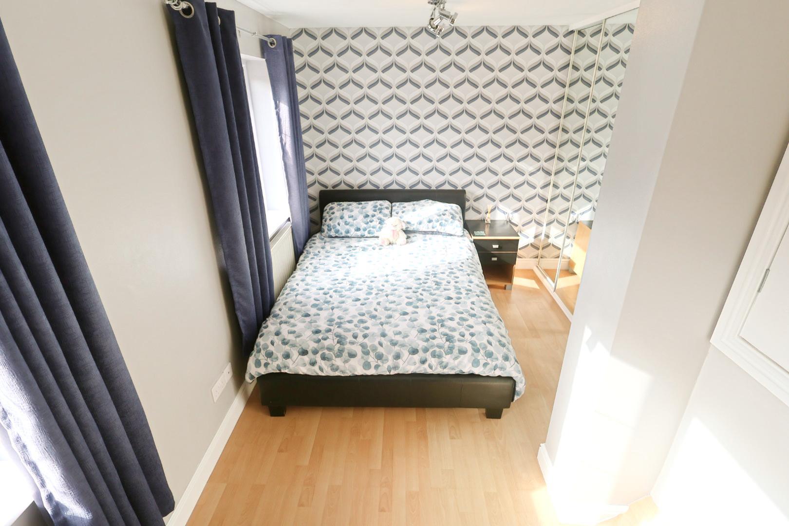 With two windows facing the front elevation, two radiators, a built-in over-stairs cupboard, and fitted wardrobes with four sliding mirrored doors.