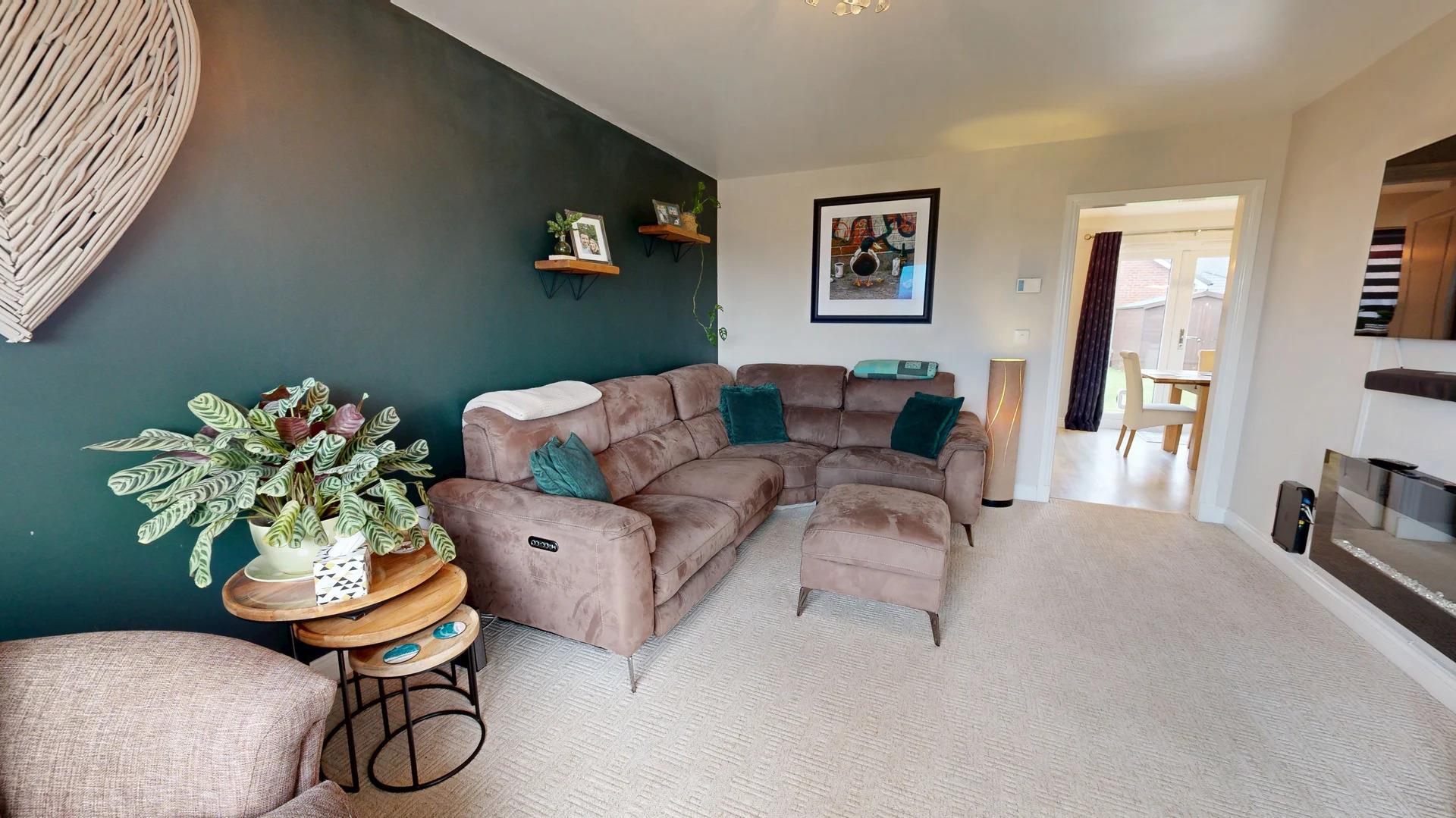 With a window to the front elevation, radiator and wall-mounted electric remote-control fire. Door leading through to the kitchen/dining room.