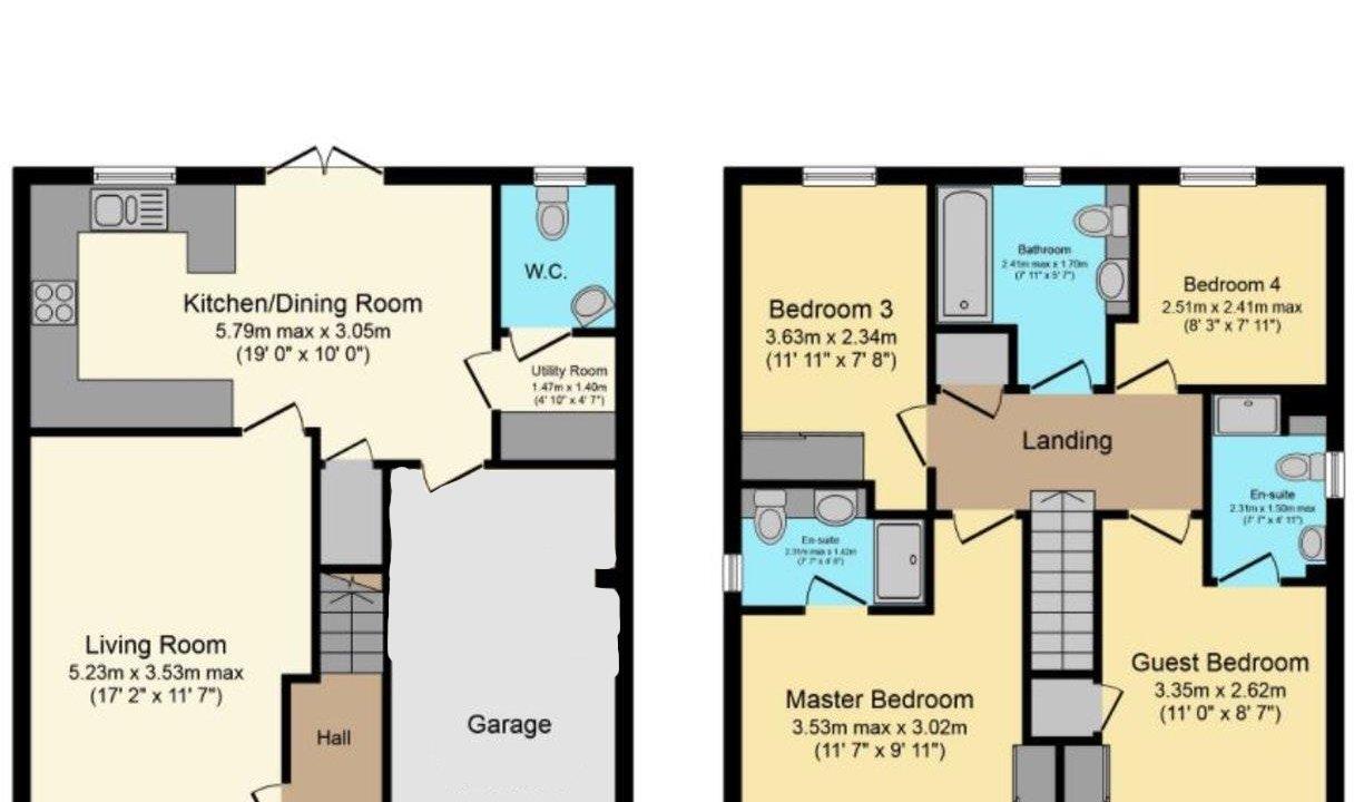 CLOAKROOM W/C 1.52m’1.83m” × 1.22m’2.44m” ( 5’6” × 4’8”)