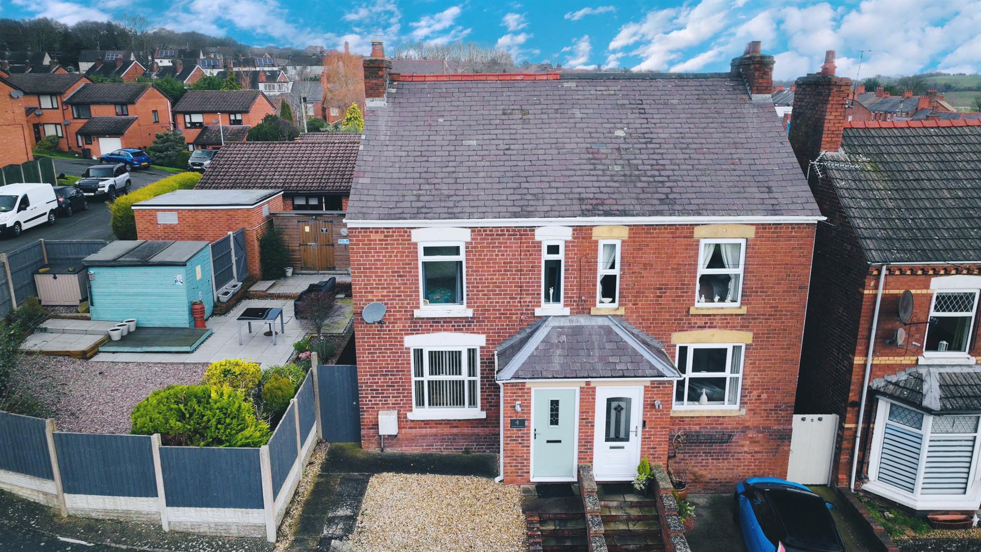 A three-bedroom property with UPVC double glazing and gas central heating. The accommodation includes a living room, a sitting/dining room, and a fitted kitchen. The first floor comprises three bedrooms and a four-piece bathroom. Externally, there are low-maintenance gardens and off-road parking. The property is located within easy access of Wrexham and nearby amenities.