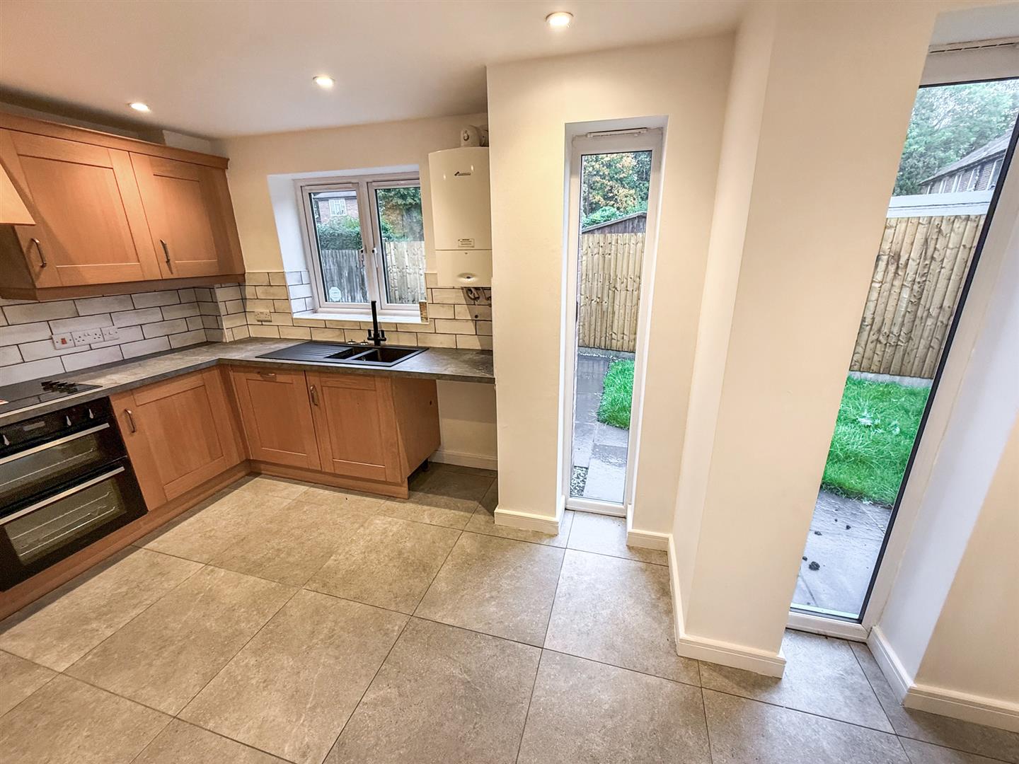 The well appointed kitchen is fitted with a range of base and wall units with work surfaces over, three windows to the rear, two of which are full height letting in lots of light, fitted electric double oven, ceramic hob, integrated extractor fan, part tiled walls, space for appliances, sink unit with a mixer tap over, spotlighting, wall mounted gas fired boiler, tiled flooring and a radiator.