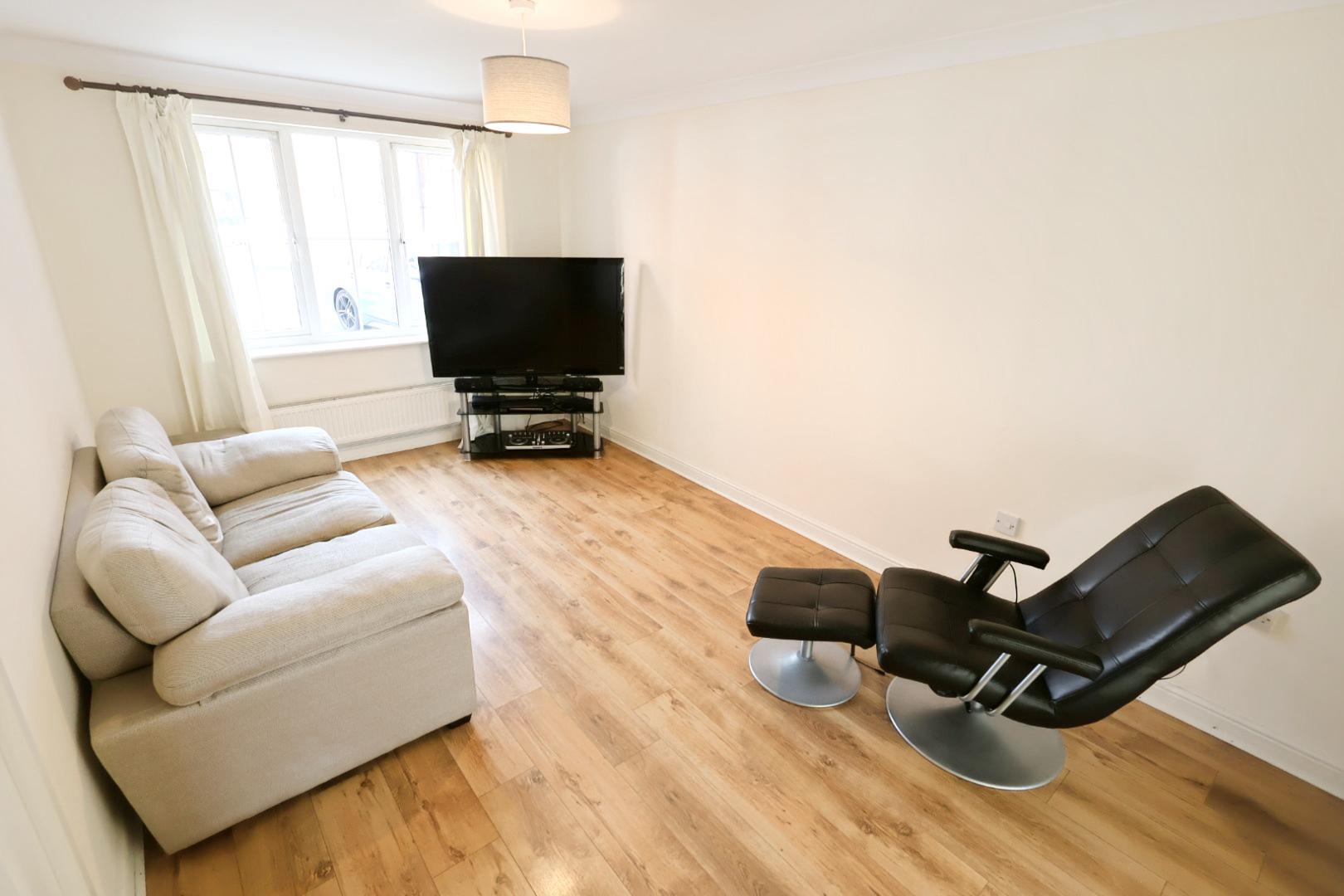 With a window to the front elevation and a radiator below. Features woodgrain-effect laminate flooring and glazed double doors opening into the dining room.