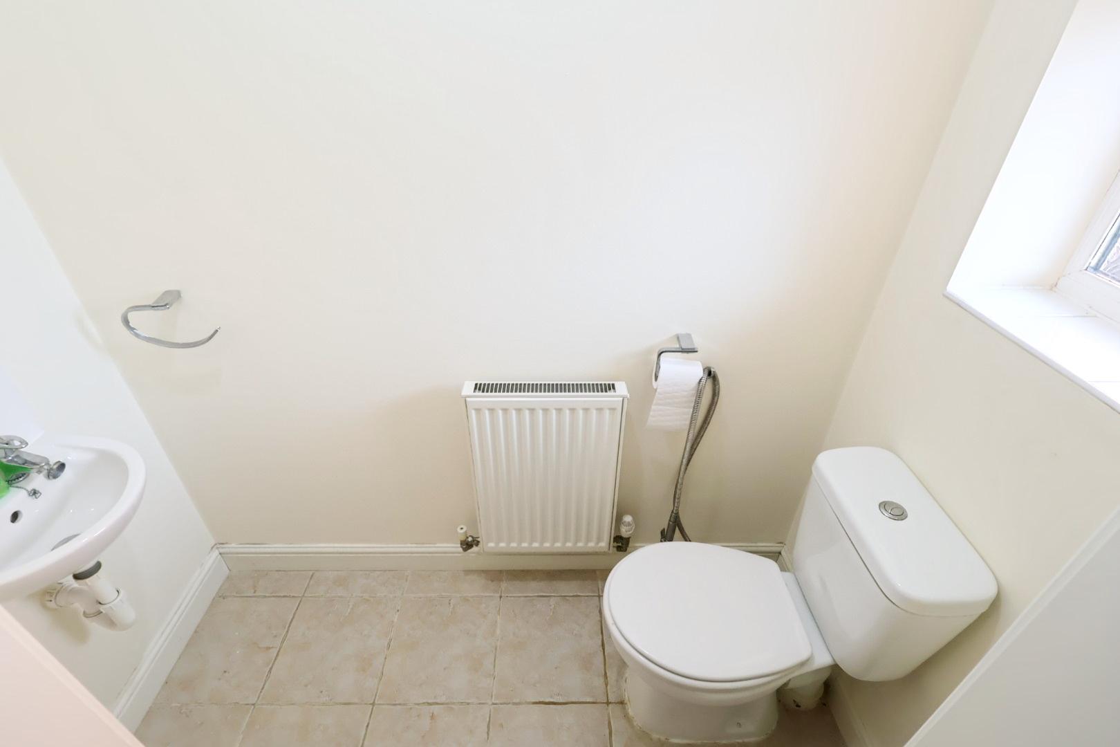Fitted with a ceramic tiled floor, radiator, and opaque window to the front elevation. Installed with a dual-flush low-level WC and a wash hand basin.