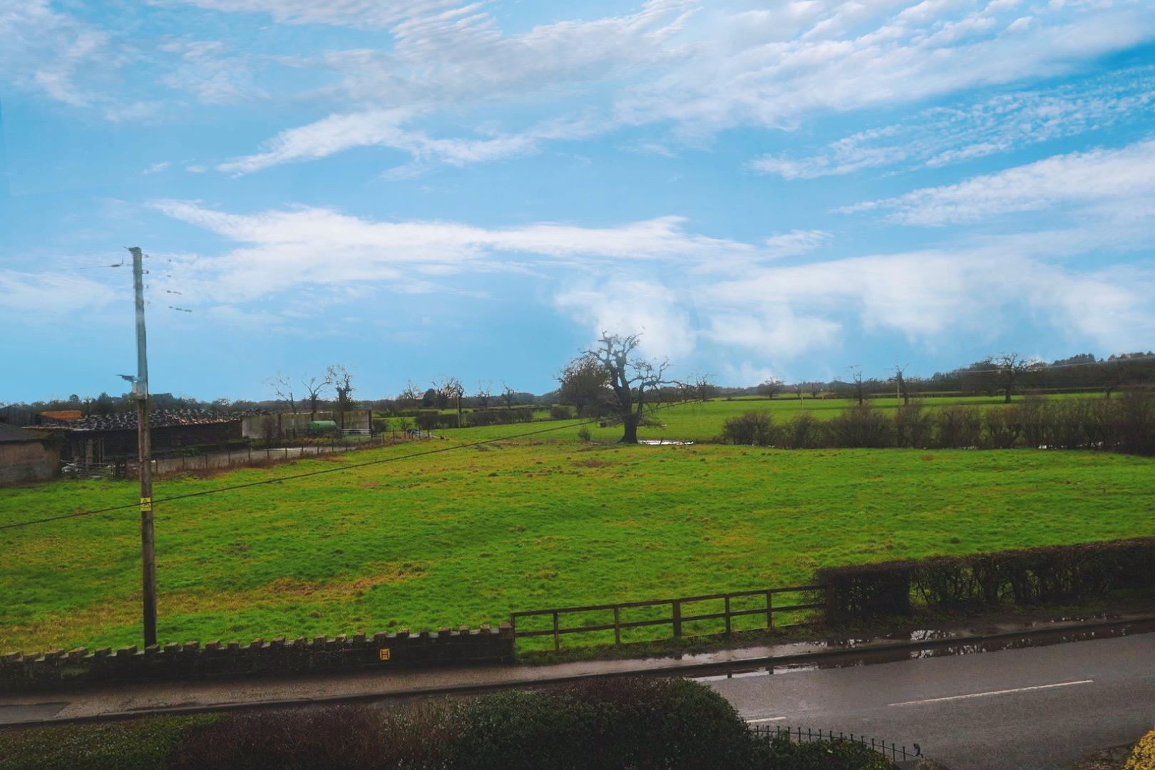 With two radiators, a feature marble fireplace housing an electric fire, a window to the side elevation, and two windows to the front elevation framing rural views.