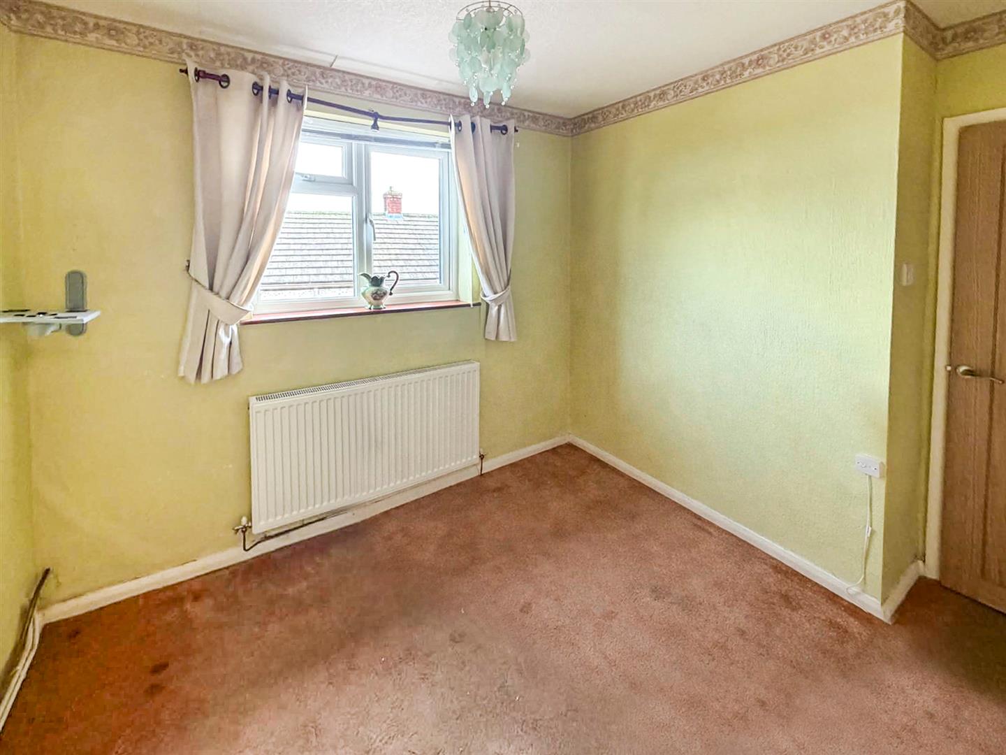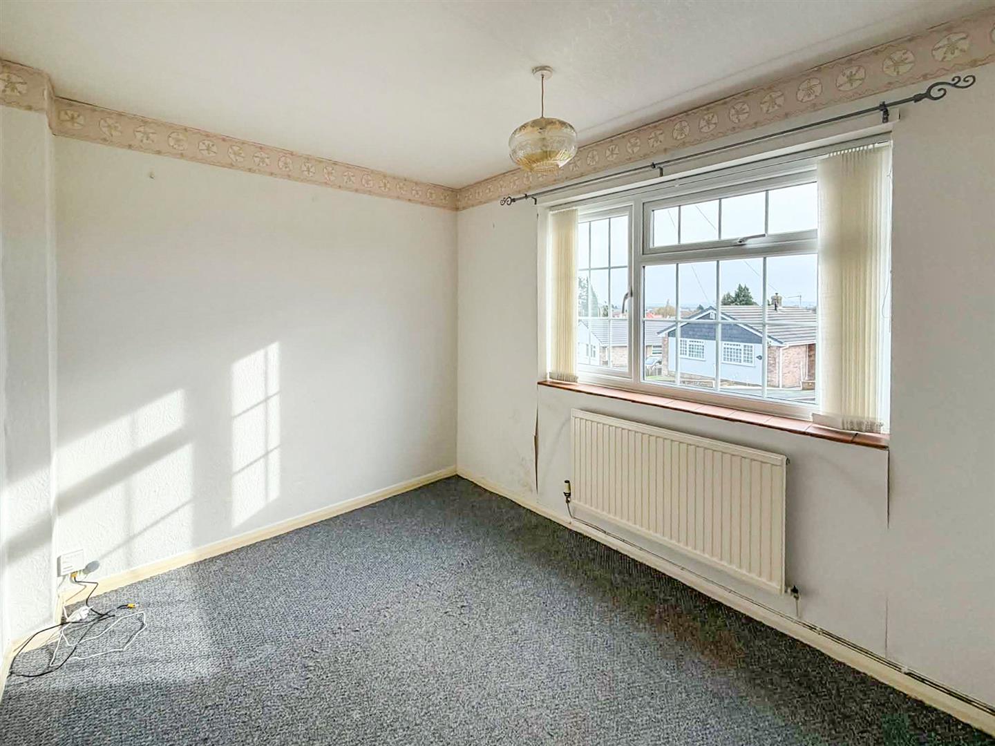A double room with a window to the front and a radiator.