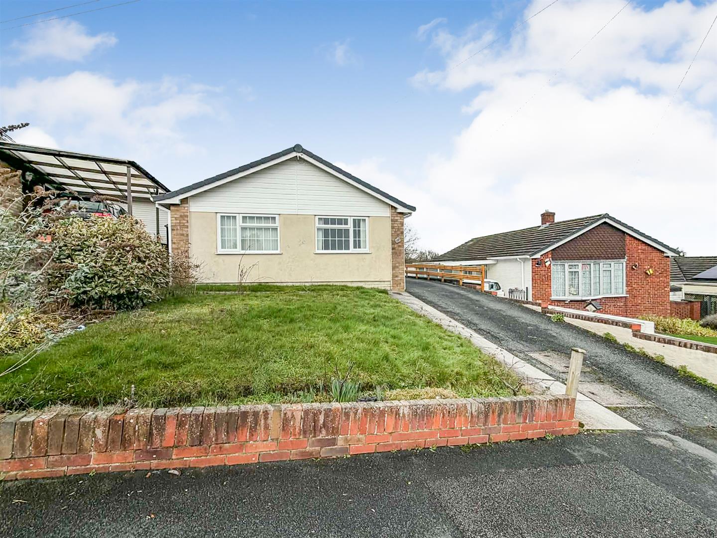 The property benefits from a driveway providing off road parking for several vehicles and leading to the garage. The front garden is laid to lawn and has borders planted with shrubs.