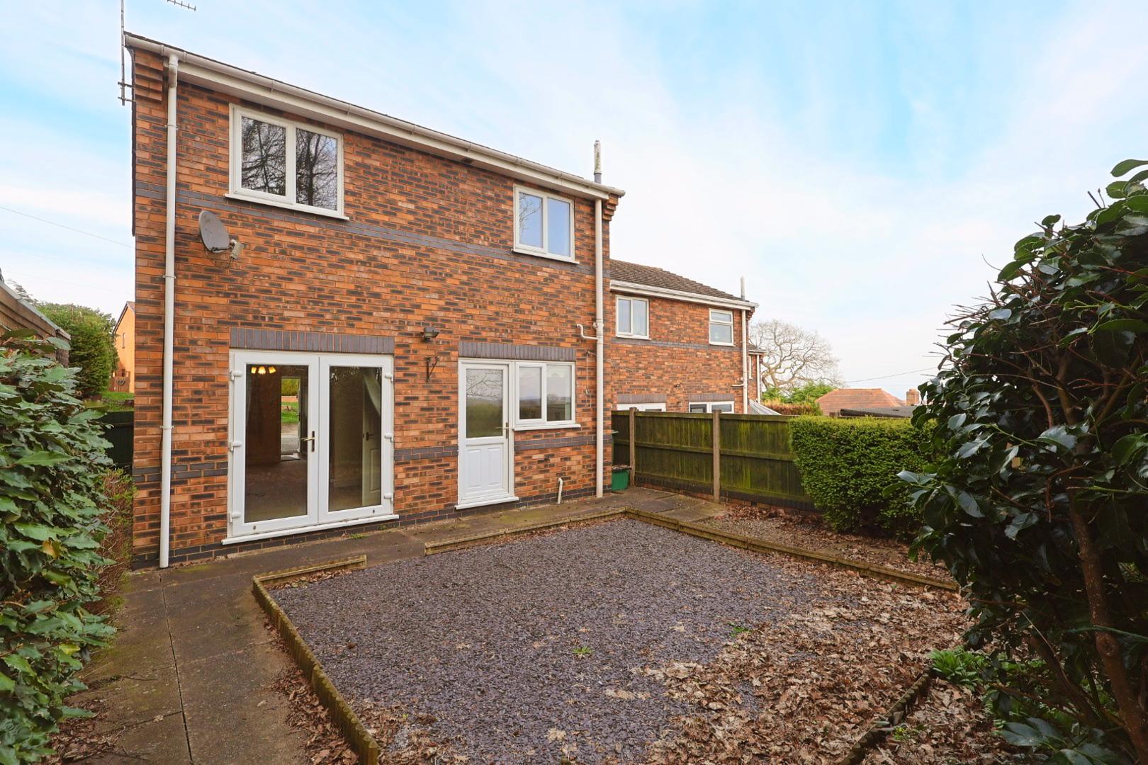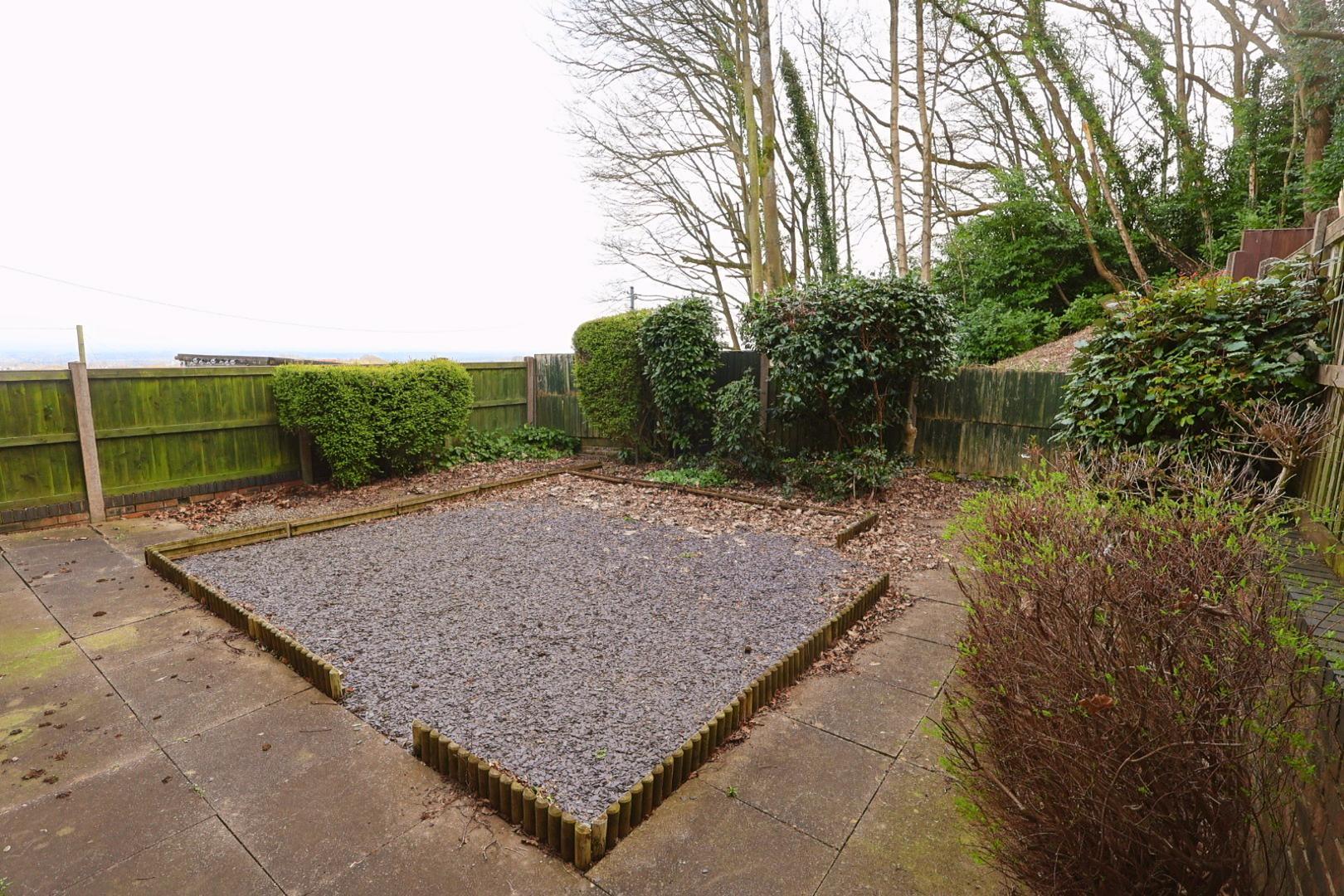 Enjoying a desirable southerly-facing aspect with woodland and rural views, the rear garden is low maintenance, being predominantly paved with a central slate-chipped area. There are a variety of shrubs and plants to the borders, enclosed by timber fence panels, along with an external light and water supply.