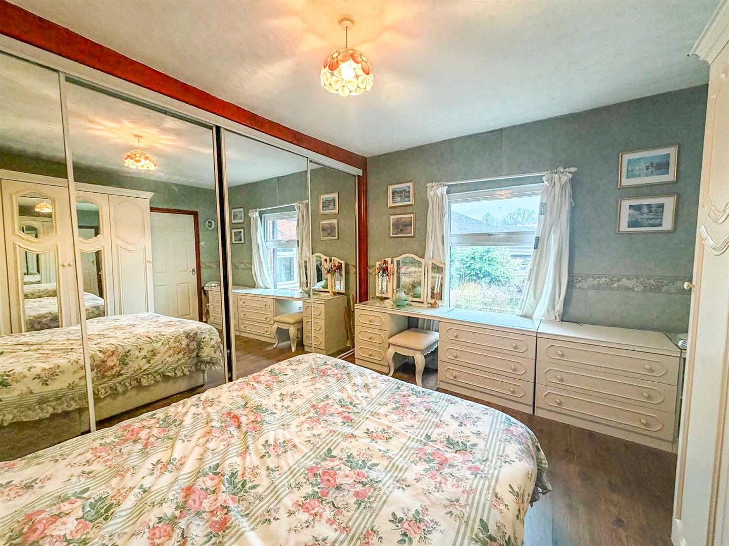 A generous double room with a window to the rear overlooking the garden, large mirrored built in wardrobes providing plenty of storage, laminate flooring and a radiator.
