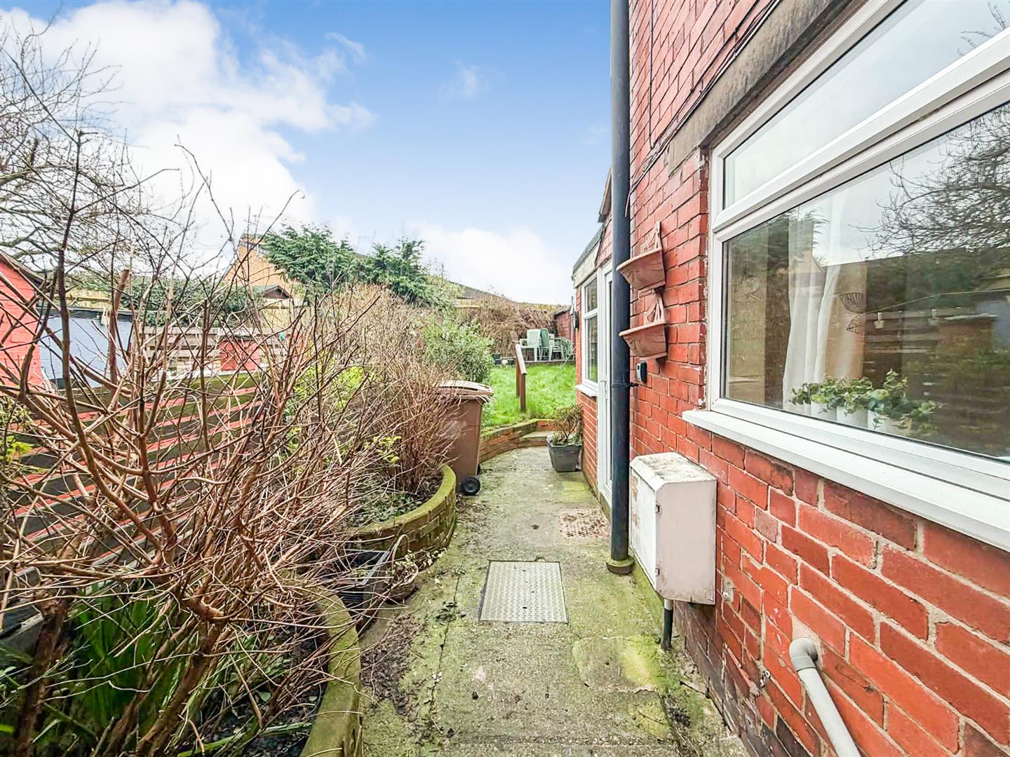 The front garden is enclosed by a wall, with a gate and paved path top the front door. The front garden is low maintainance with paving for ease.